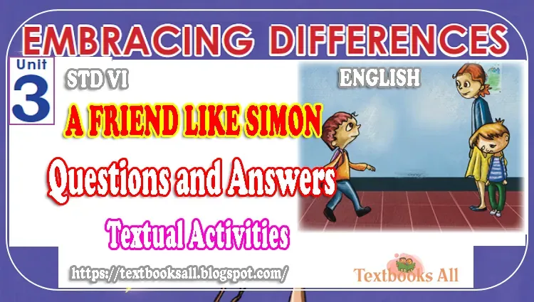Std 6 English Unit III Embracing Differences - Lesson 03 A Friend Like Simon - Textual Questions and Answers & Activities